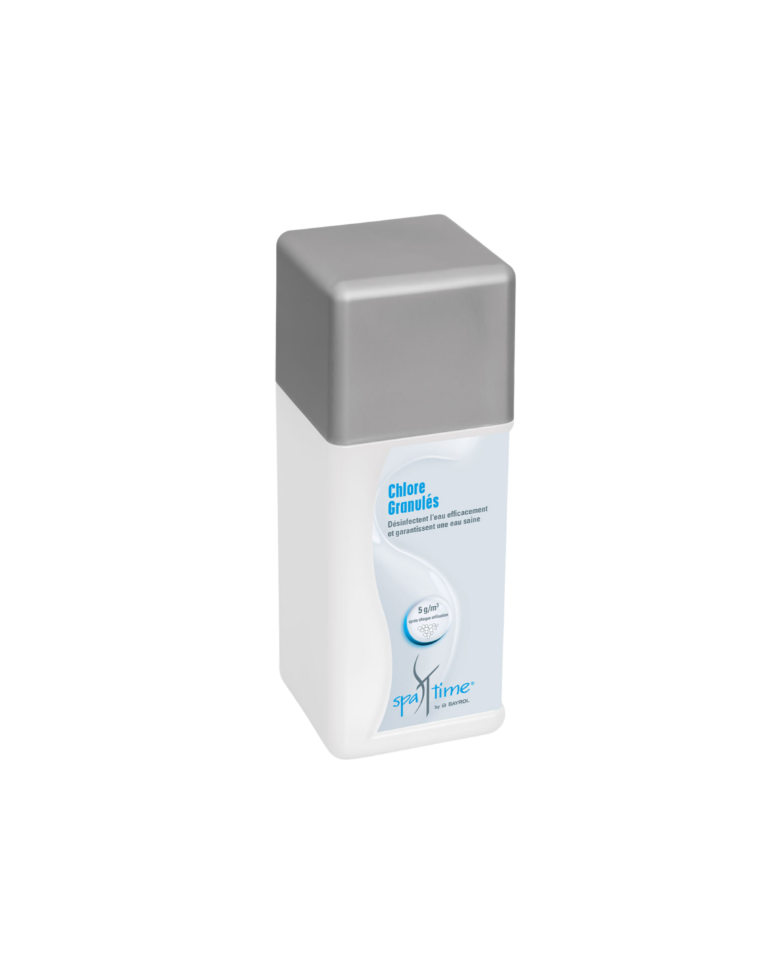 SpaTime Chlore Granulés est un désinfectant spécialement formulé pour l’entretien régulier de l’eau des spas.